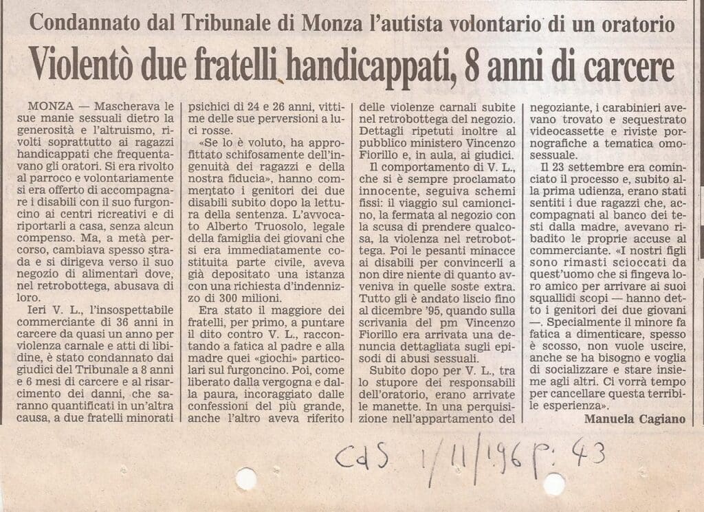 Senza allarmismi, riguarda i genitori che ignari delle insidie di cui sono ancora intrisi gli spazi parrocchiali e di vita comunitaria vi affidano i propri figli. Spazi da non potersi realisticamente reputare protettivi e, teniamo a sottolineare, non limitabili alle responsabilità di prevenzione e contrasto imputabile alla sola chiesa cattolica.
