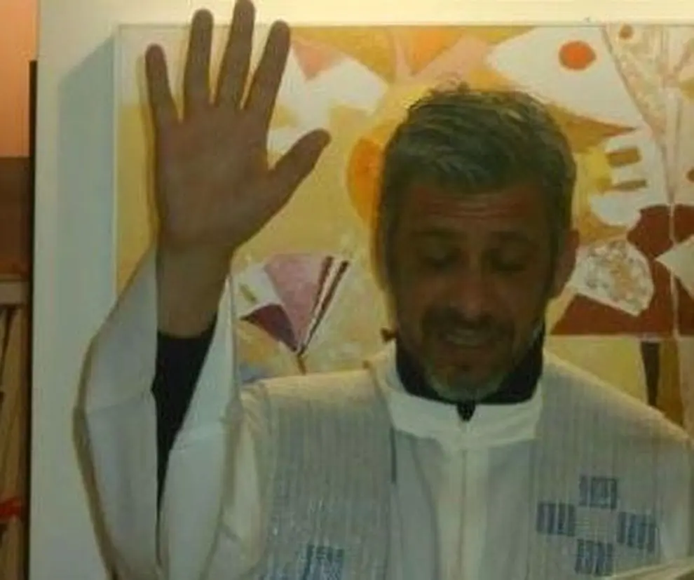 Don Roberto Berti in uno dei suoi tipici atteggiamenti
