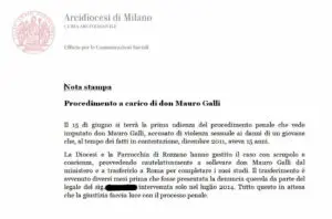 Non vi sarebbe quindi dubbio che i più stretti collaboratori del Cardinale, in particolare il Vicario generale Mons. Mario Delpini è il vescovo Pietantonio Tremolada fossero a conoscenza del fatto “assai grave” e ciò nonostante abbiano semplicemente spostato Don Mauro Galli a occuparsi ancora di minori in quattro oratori nella zona di Legnano, senza avviare tempestivamente alcuna indagine Previa come invece previsto dal Diritto Canonico.