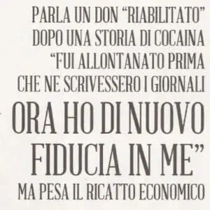 Fq Millennium è riuscito a parlare con un prete “riabilitato” dopo più di due anni passati dai Venturini. Tutto era iniziato così: «Il superiore mi ha chiesto se non avessi nulla da riferirgli. Poi mi ha detto che il giorno dopo sarei dovuto partire». Allontanato dalla sua parrocchia all’improvviso, senza che ai fedeli venisse comunicato nulla, dietro garanzia di anonimato ripercorre la sua storia dal punto in cui le cronache hanno smesso di raccontarla. Lo chiameremo don Lorenzo, lungo la camminata che dalla canonica ci porta al bar della piazza principale per un caffè, e poi fino all’ufficio dove il sacerdote svolge parte delle sue nuove mansioni. «Dal mio superiore non ho sentito quell’amore e quella comprensione che predica il Vangelo. Avrei preferito affrontare il momento di difficoltà nella mia parrocchia. E assumermi lì le mie responsabilità, davanti alla comunità». Ma don Lorenzo viene allontanato » ancora prima che i giornali raccontino la vicenda di droga in cui è implicato, grazie a una comunicazione degli investigatori al vescovo.