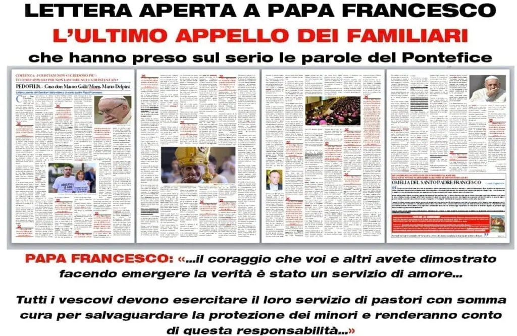 L’appello al Santo Padre arriva con una lunga lettera aperta, nella quale la vicenda di Alessandro viene per l’ennesima volta ricostruita: “Caro Papa Francesco, in questi interminabili anni ti abbiamo scritto decine di volte, abbiamo scritto centinaia di pagine a tanti sacerdoti, vescovi, cardinali (…) Abbiamo denunciato con nomi e cognomi, come tu esortavi a fare, quando anni fa avevi delineato l’identikit del buon sacerdote, che sa e ha il coraggio di denunciare (…) Ci siamo fidati di te e abbiamo denunciato il comportamento dell’arcivescovo di Milano, monsignor Delpini. Probabilmente abbiamo sbagliato”.