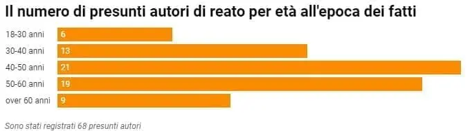 Il rapporto contiene anche un’analisi del profilo dei presunti autori delle violenze, che risultano essere 68 in totale: riassumendo si può descrivere come un maschio adulto di età compresa tra i 40 e i 60 anni. Si tratta soprattutto di chierici, una definizione molto generica che indica tutte le persone che in qualche modo hanno un ruolo all’interno della Chiesa o hanno preso una forma di voto (nel 44,1% dei casi): seguono laici (33,8% dei casi) e, infine, il personale religioso, un termine con cui la Chiesa verosimilmente indica sacerdoti e vescovi, in netta minoranza (22,1% dei casi).