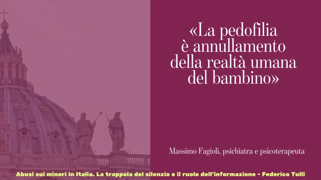 “Chiesa e pedofilia, il caso italiano”. Dopo oltre 200 pagine di inchiesta, fonti verificate, documenti e testimonianze alla mano, sono giunto alla conclusione opposta rispetto a quella del monsignore, avendo scoperto che dall’Unità d’Italia in poi la pedofilia di matrice clericale attraversa senza soluzione di continuità tutta la storia del nostro Paese.