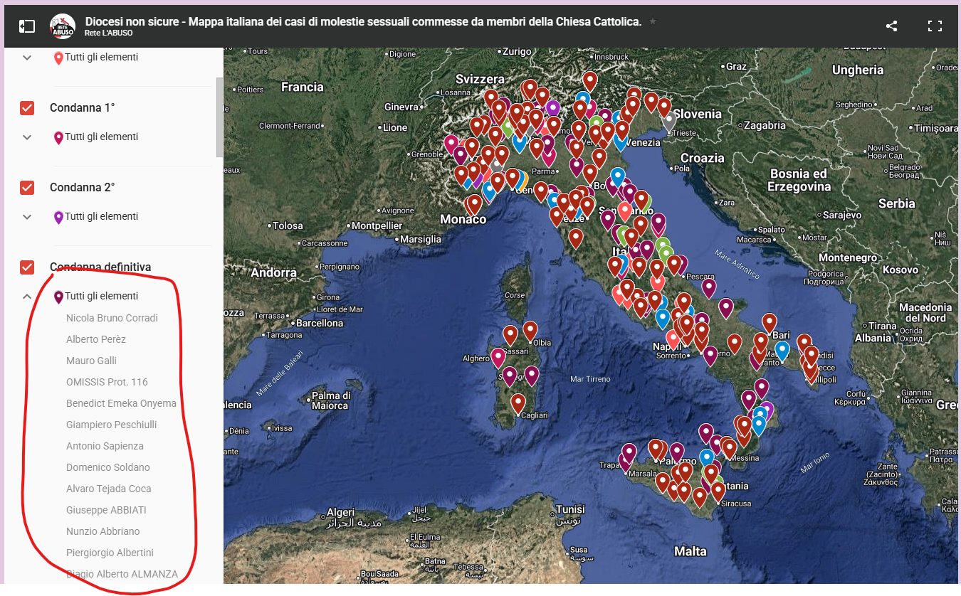 Dopo la pubblicazione del nuovo database dei casi italiani iCODIS, oggi disponibile nella versione 3.2 che aggiunge nella versione BETA il nuovo sistema di ricerca “Live Search”, abbiamo messo mano anche alla storica mappa dei casi italiani nelle “Diocesi non sicure”.