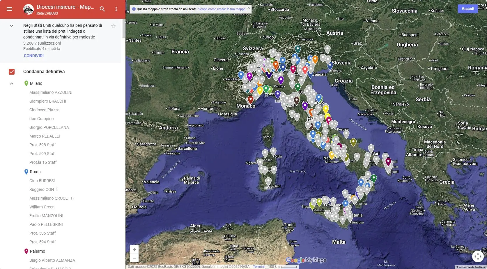 “In Italia non c’è l’obbligo di denuncia per i vescovi. Non puoi definirli ‘insabbiatori’, perché la legge non impone loro la denuncia”, aggiunge il presidente di Rete L’Abuso. Il database dell’associazione permette anche di ricostruire i profili degli autori.