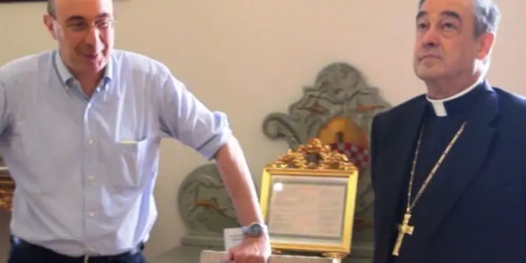Il faccia a faccia tra il vescovo di Savona Vittorio Lupi e una delle vittime di don Nello Giraudo, Francesco ...